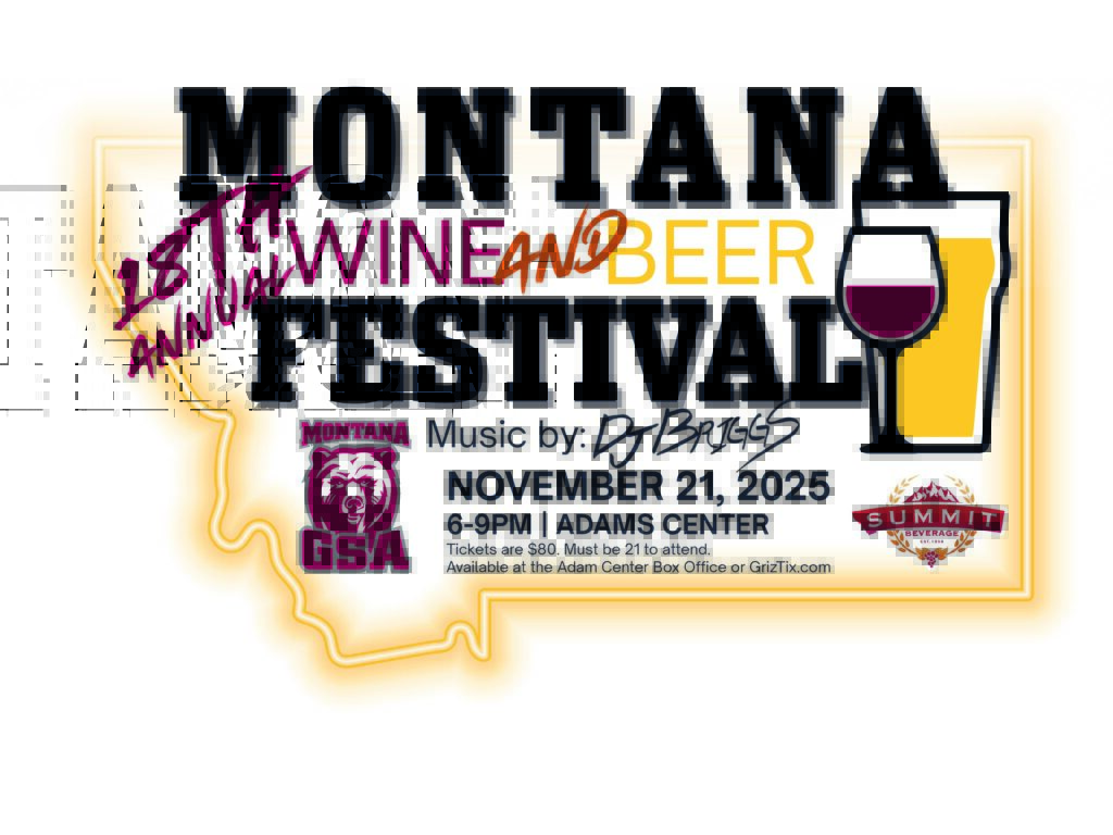 Friday, November 21st, join the Grizzly Scholarship Association for the 2025 Montana Wine & Beer Festival presented by Summit Beverage and the GSA. Enjoy drinks and food from over 35 vendors. Tickets sales open Monday, September 22nd. Tickets will be $80 per person and will be available to purchase in person at the Adams Center Box Office.